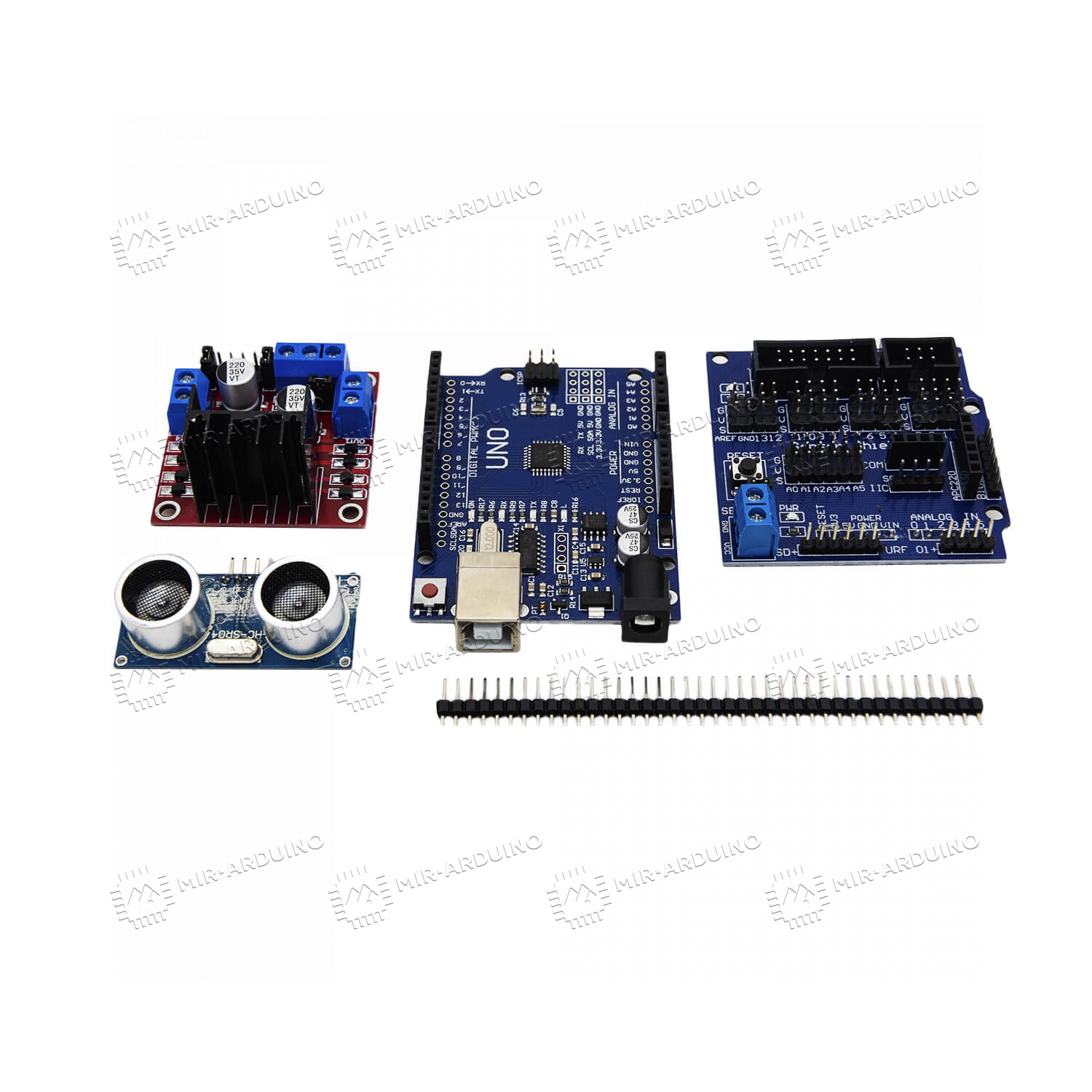 Набор для моделирования Ардуино (Arduino) 2WD Car Robot Lafvin представляет собой конструктор, из которого можно собрать умный робот-автомобиль. Машиной можно управлять с помощью пульта, который входит в комплект. Также в наборе имеются акриловая основа автомобиля, все необходимые датчики, плата расширения, сервопривод, драйверы, провода, колеса и крепежи, диск с инструкцией по сборке. Умный конструктор будет полезен для начинающих программистов, поможет при обучении робототехнике. Подойдет как новичкам, познающим азы электроники, так и опытным инженерам.